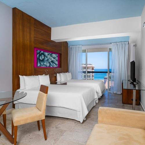 34m2, ocupación máxima 4 personas, cuenta con dos camas dobles & sofá cama, con vista al resort, así como diversos servicios y acceso al Hotel Krystal Grand® Los Cabos.