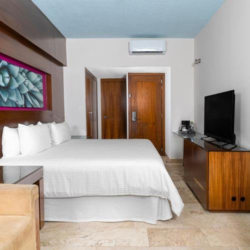 34m2, ocupación máxima 4 personas, cuenta con una cama king size & sofá cama con vista al resort, así como diversos servicios y acceso al Hotel Krystal Grand Los Cabos.