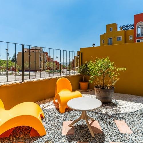 167.41m2, ideal para 4 personas Planta Baja: ● Sala -comedor ● Cocina integral con desayunador ● Cuarto de lavado ● Medio baño ● Jardín Planta Alta: ● Recámara principal con cama King Size ● Recámara secundaria con cama queen size ● Sala de TV ● 2 baños completos Roof top ● Roof top ● Medio baño