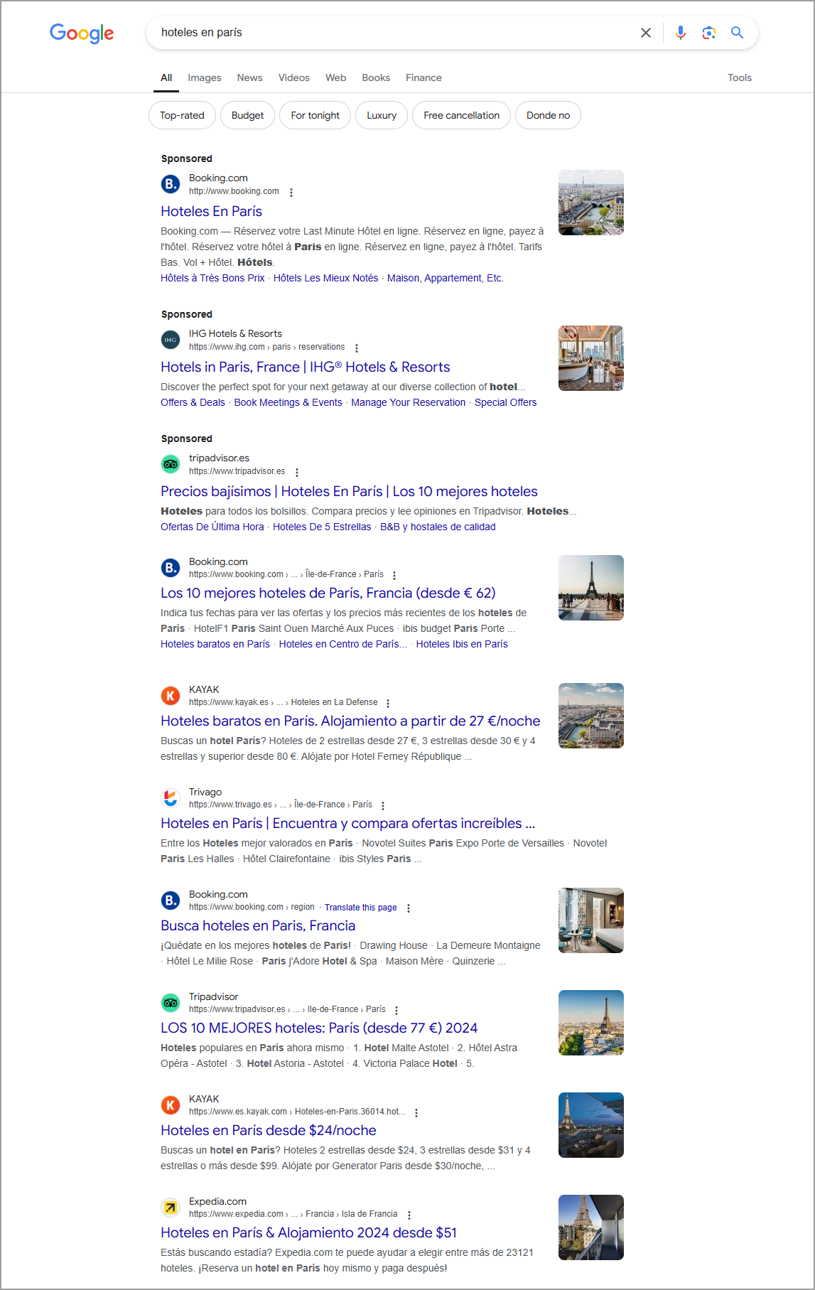 Ejemplo "hotel + destino" en Google España: